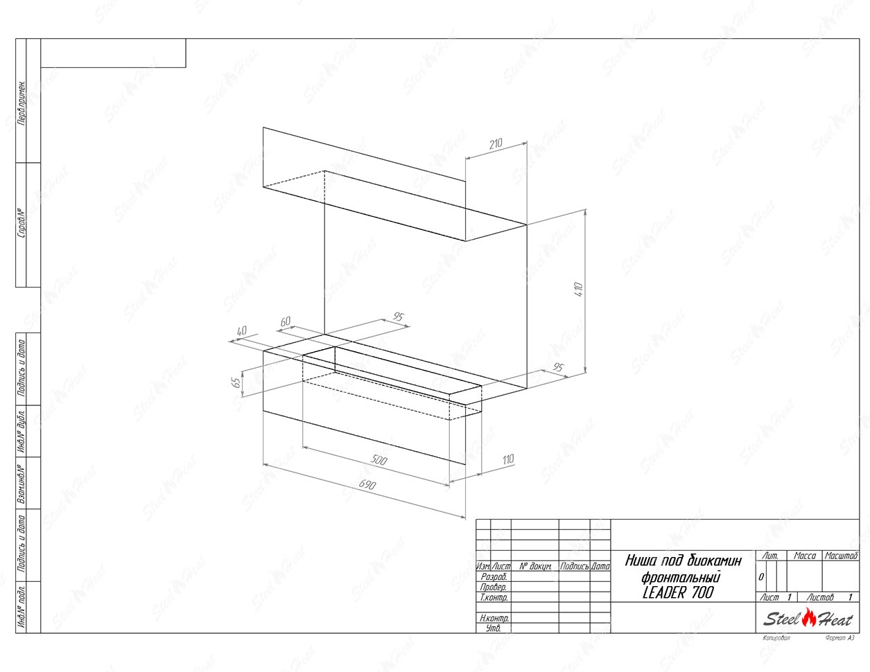 Встраиваемый Биокамин фронтальный SteelHeat Leader 700 предназначен для встраивания в глухие ниши из гипсокартона, кирпича, пеноблоков, бетона.