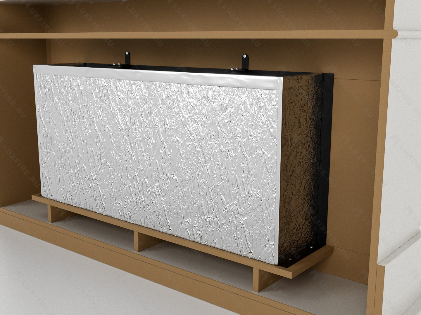 Представляет собой сборную окрашенную конструкцию из МДФ c портальным биокамином Lux Fire "Фаер Бокс 1-42"