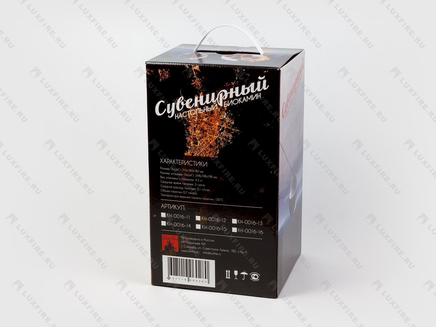 Представляет собой металлический внешний корпус с встроенным топливным блоком Lux Fire 150-2 на декоративных ножках в виде Щита. Огонь ограничивается стеклянным закаленным плафоном диаметром 180 мм.