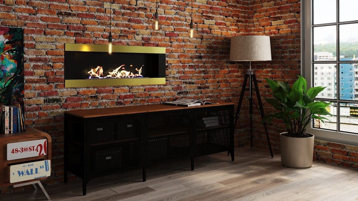 Встраиваемый биокамин «Голд 1200V» изготовлен из латуни и нержавеющей стали, окрашен термостойкой порошковой краской.