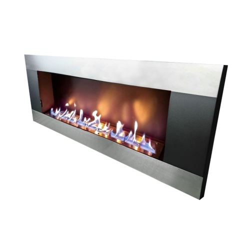Биокамин стального с черным цвета, который прекрасно подойдет как встраиваемый вариант для украшения вашего дома.