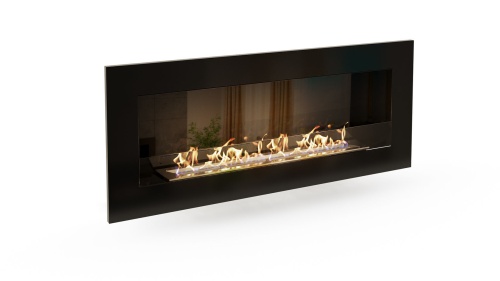 - Декоративное стекло — крепится на всю заднюю стенку очага. За счет своего зеркального отражения, пламя визуально становится в 2 раза больше и кажется, что камин горит еще ярче.