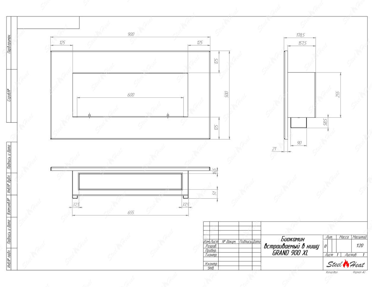 Биокамин SteelHeat GRAND 900 XL - Характеристики