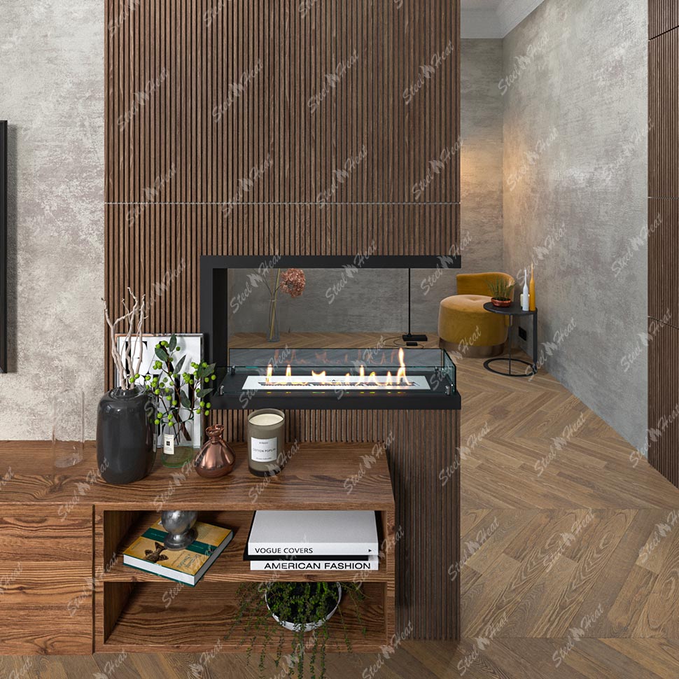 Встраиваемый Биокамин торцевой SteelHeat Leader 800 предназначен для встраивания в глухие ниши из гипсокартона, кирпича, пеноблоков, бетона.