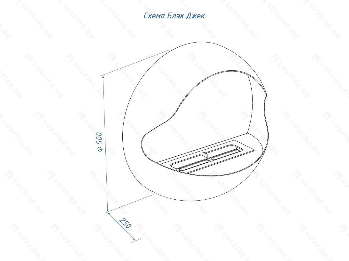 Представляет собой сборную металлическую конструкцию в форме сферы с топливным блоком Lux Fire 300 S. Оригинальный дизайн.