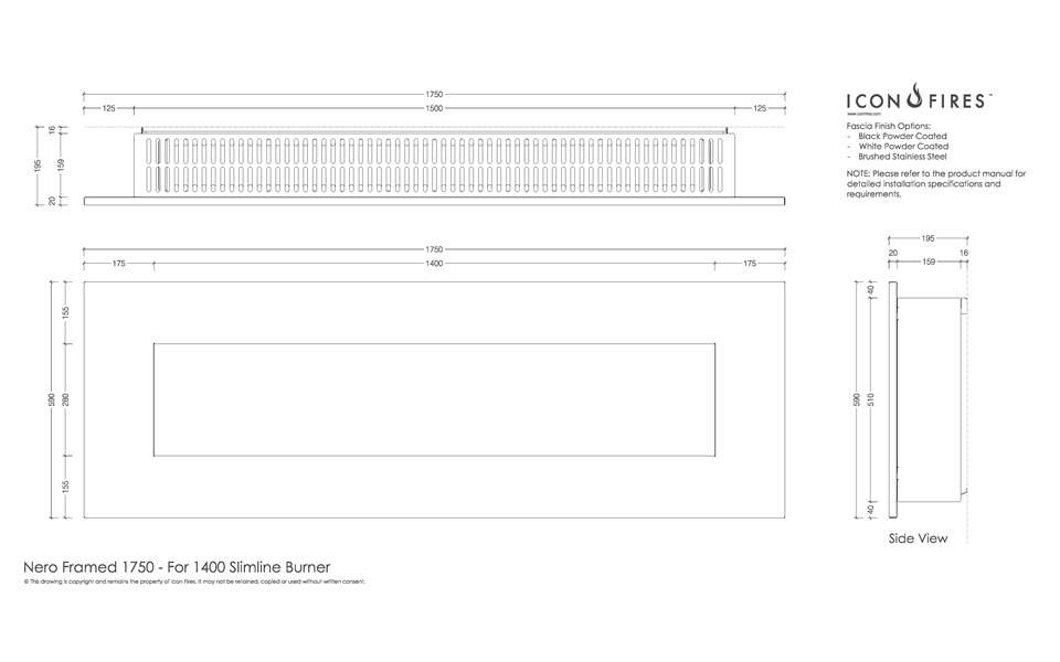 Настенный биокамин Nero 1750SS с декоративной рамкой из брашированной нержавеющей стали комплектуется горелкой ICON FIRES Slimline 1400mm.Камин изготовлен из стали с покрытием термостойкой краской.