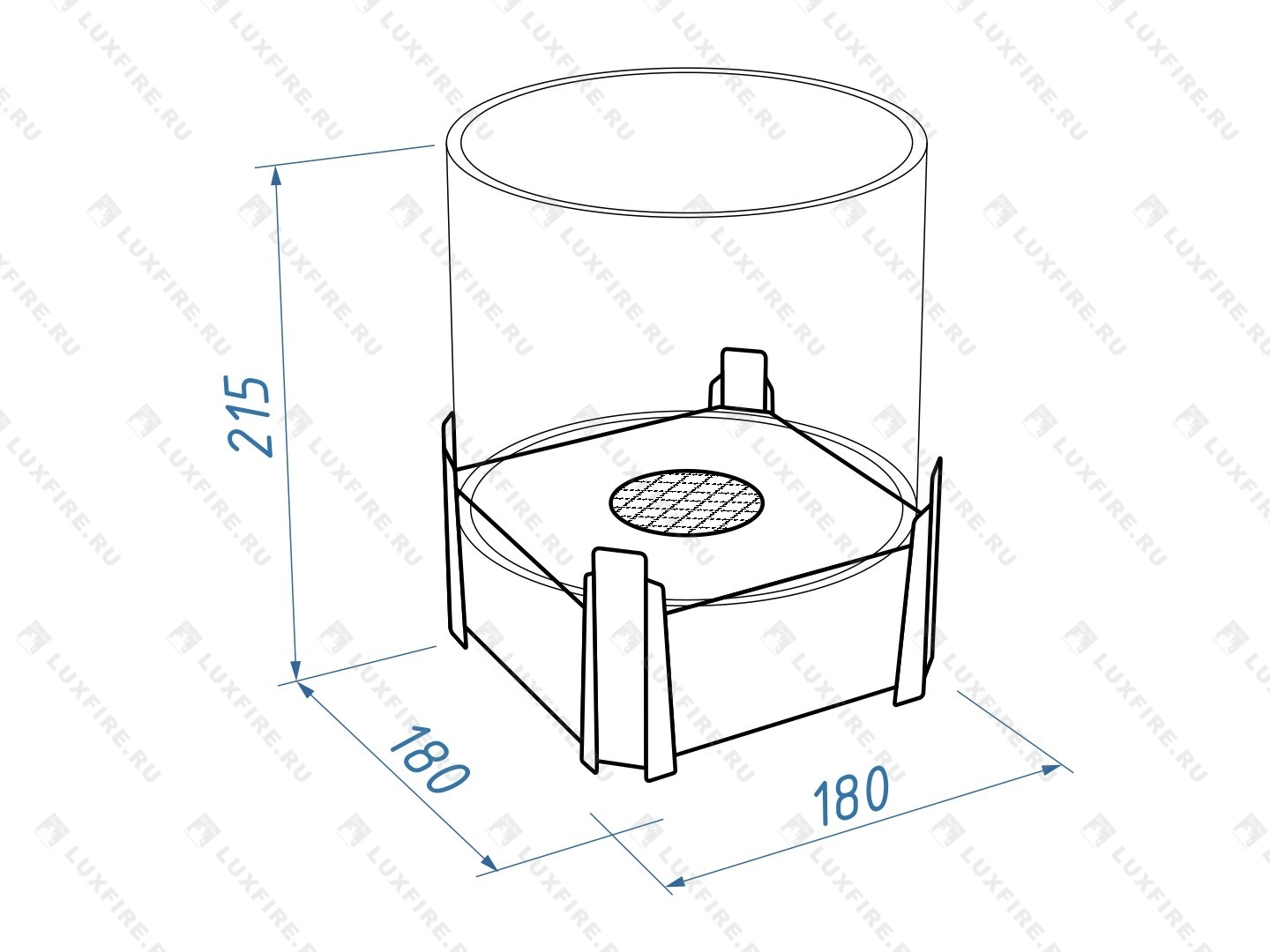 Представляет собой металлический внешний корпус с встроенным топливным блоком Lux Fire 150-2 на декоративных ножках в виде Снеговиков. Огонь ограничивается стеклянным закаленным плафоном диаметром 180 мм.