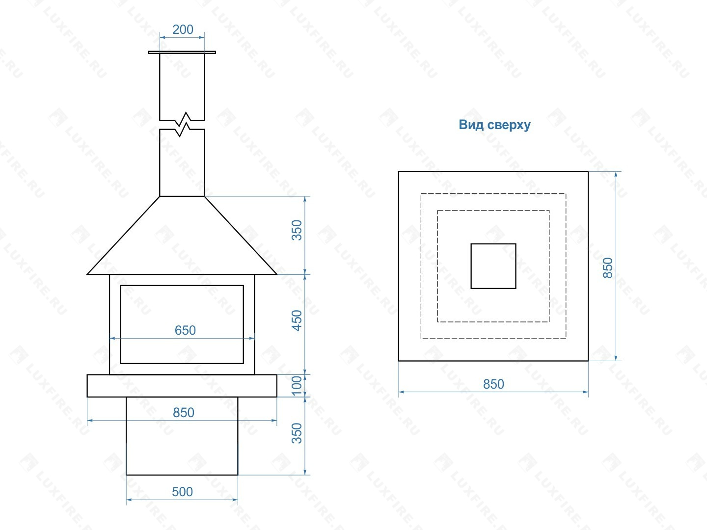 Размер биокамина ВхШхГ: 2500х850х850 мм