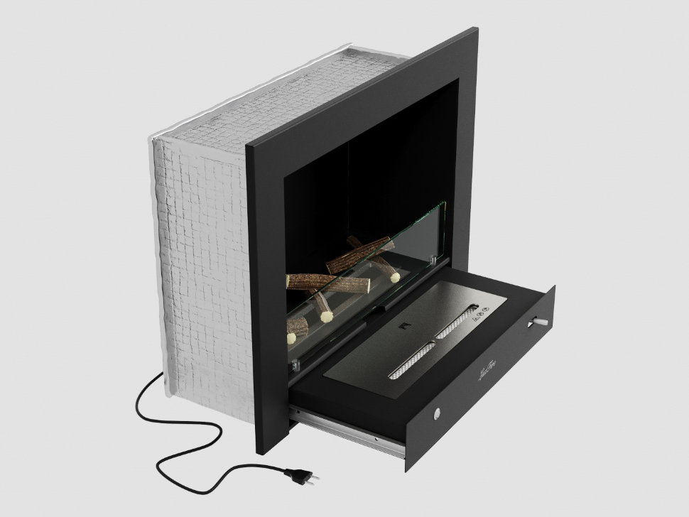 - Термоизоляционный материал, который установлен поверх металлического корпуса биокамина. Позволяет встраивать камин даже в порталы из МДФ!