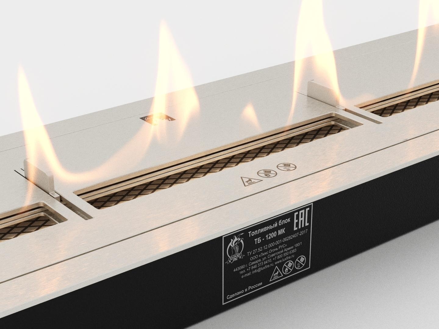Также есть возможность приобрести топливный блок с защитным стеклом - модель GOOD FIRE 1200 МУС.