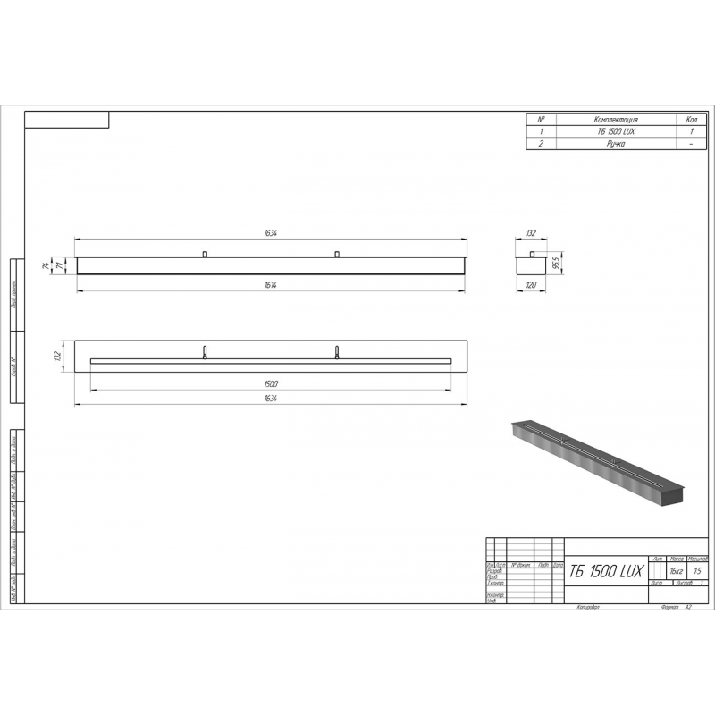 | ДxВxГ: | 1634мм x 132мм x 74мм |