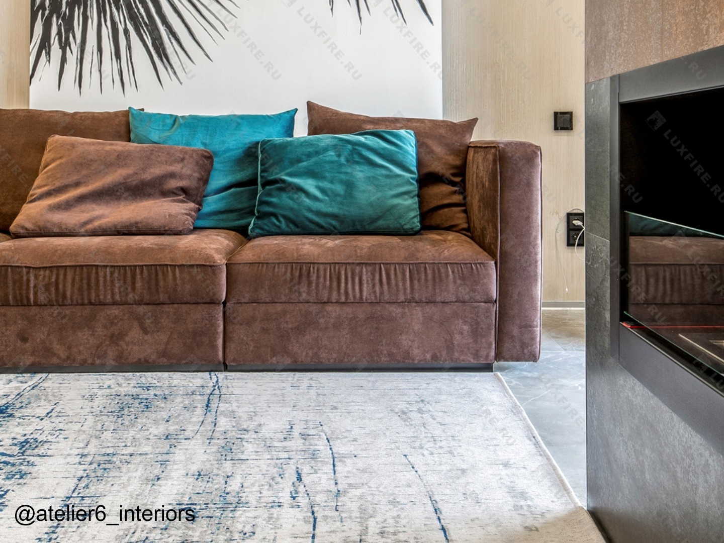 Представляет собой сборную металлическую конструкцию класса М, создающую полузакрытое безопасное пространство для огня с топливным блоком Lux Fire 900МУ ограниченную закаленным стеклом в котором горит живой огонь с углом обзора 180 градусов .
