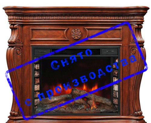 Портал электрокамина выполнен в цвете «вишня». Изысканности и изящности порталу придают скругленная верхняя панель и основание, волнообразные развёрнутые колоны с капителью. Карниз портала украшен профилем и красивыми резными листьями.
