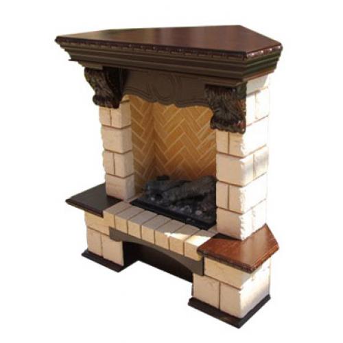 Если в вашем помещении имеется свободный угол, то оформление его при помощи камина – это очень неплохая идея. Угловой каминокомплект «Pierre Luxe» с очагом «Opti-Myst Cassette 400» станет отличным дополнением любого интерьера. Основной цвет «Шампань» в нем отлично сочетается с цветом «Темный дуб», используемым при оформлении декоративных элементов.